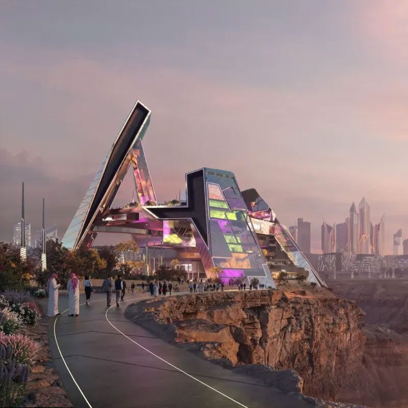 سيكون المركز بمثابة تحفة معمارية معلقة على حافة جبل طويق، حيث سيضم مسرحًا بسعة 3 آلاف مقعد، ومسارح تفاعلية أصغر، وستدعم تجربة الزوار تقنيات الواقع المعزز والافتراضي لتقديم عروض فنية غير مسبوقة، على يستقبل 800 ألف زائر سنويًا 🧑✈️